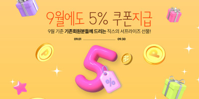 (종료) [9월] 기존회원 5% 할인 쿠폰 드려요!