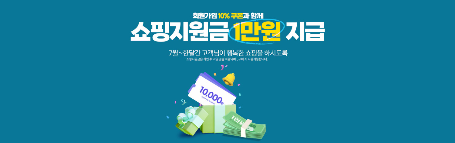 [7월] 신규회원 10% 쿠폰+1만원 지원!