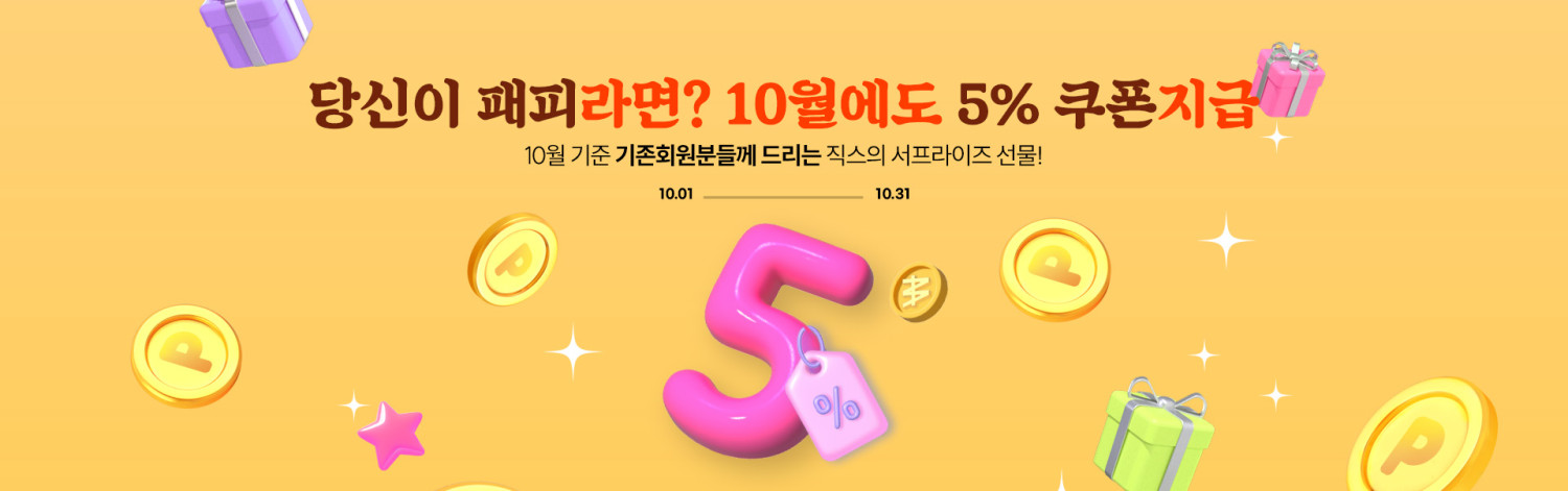 [10월] 기존회원 5% 할인 쿠폰 드려요!