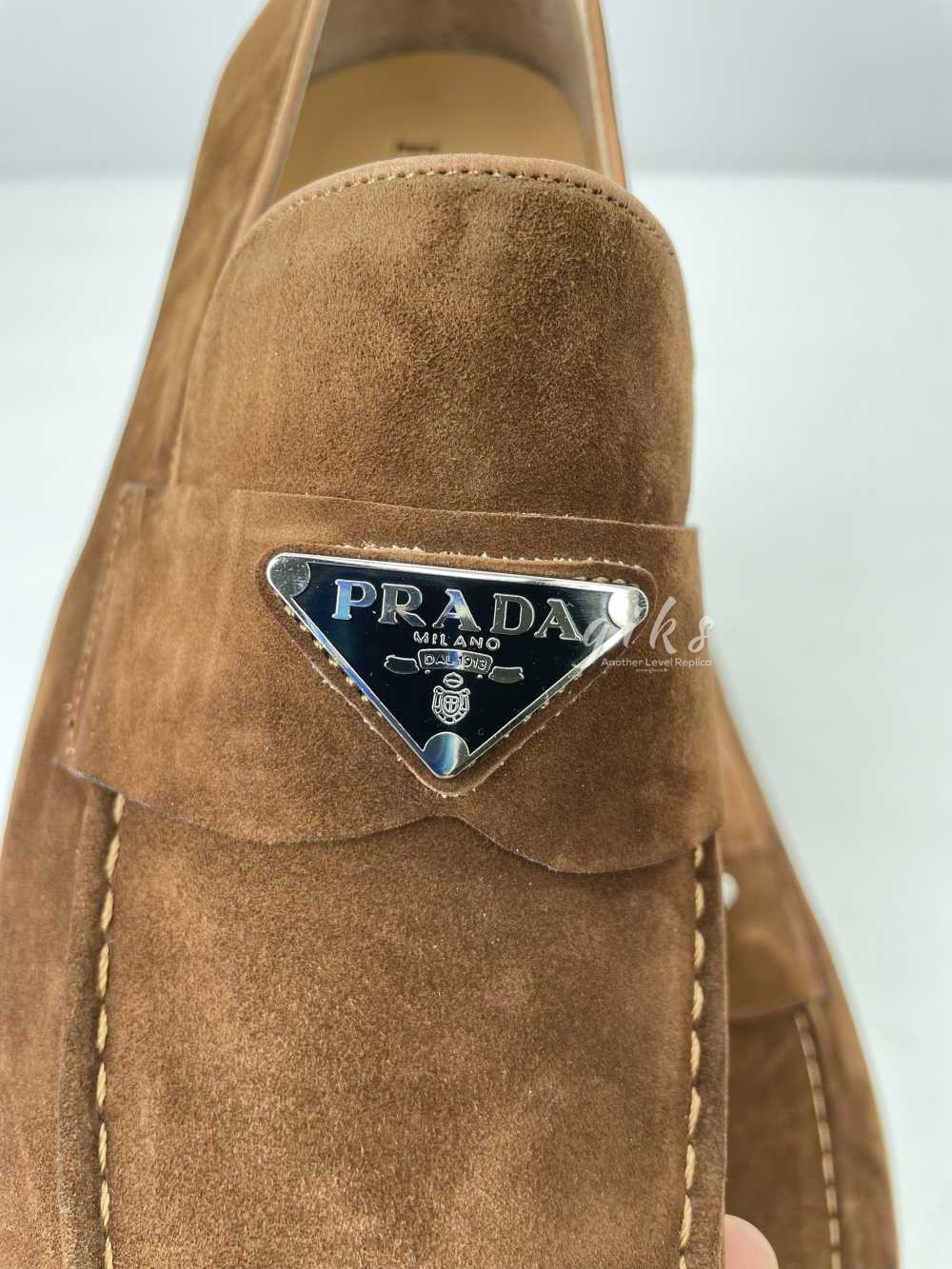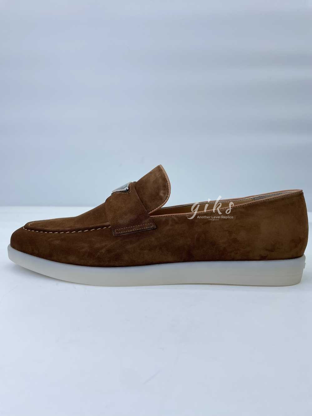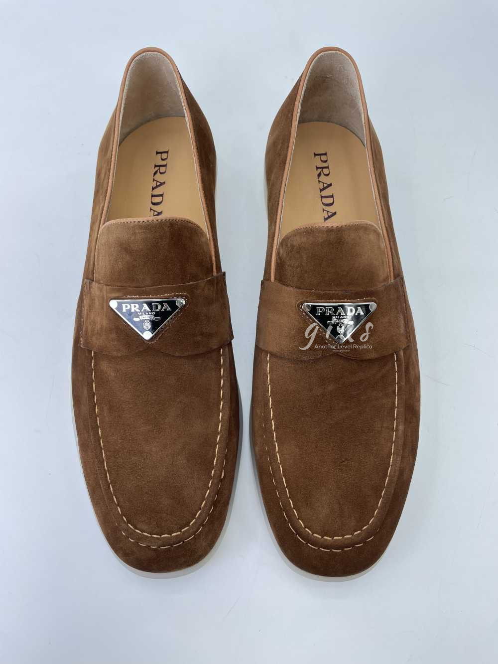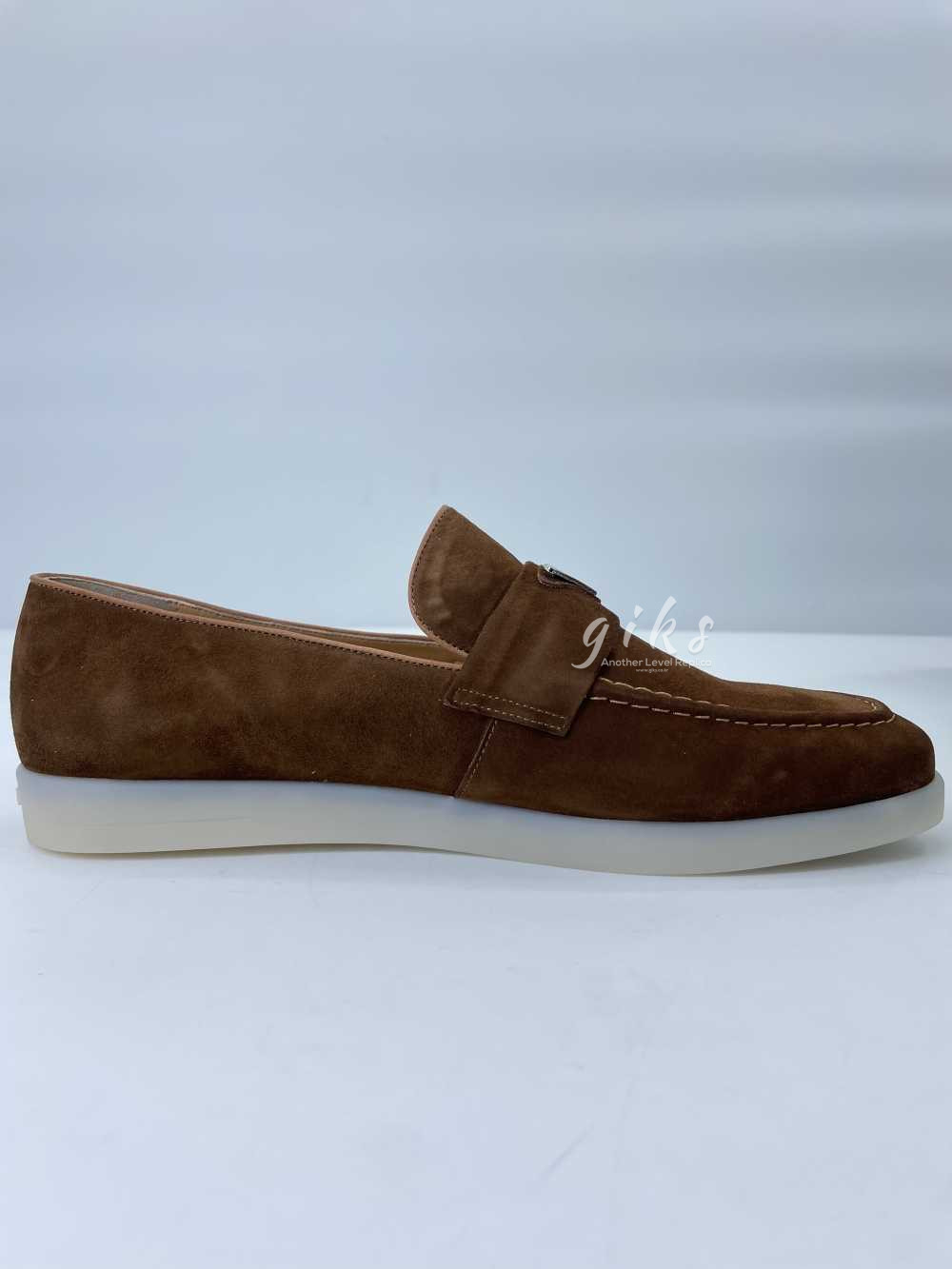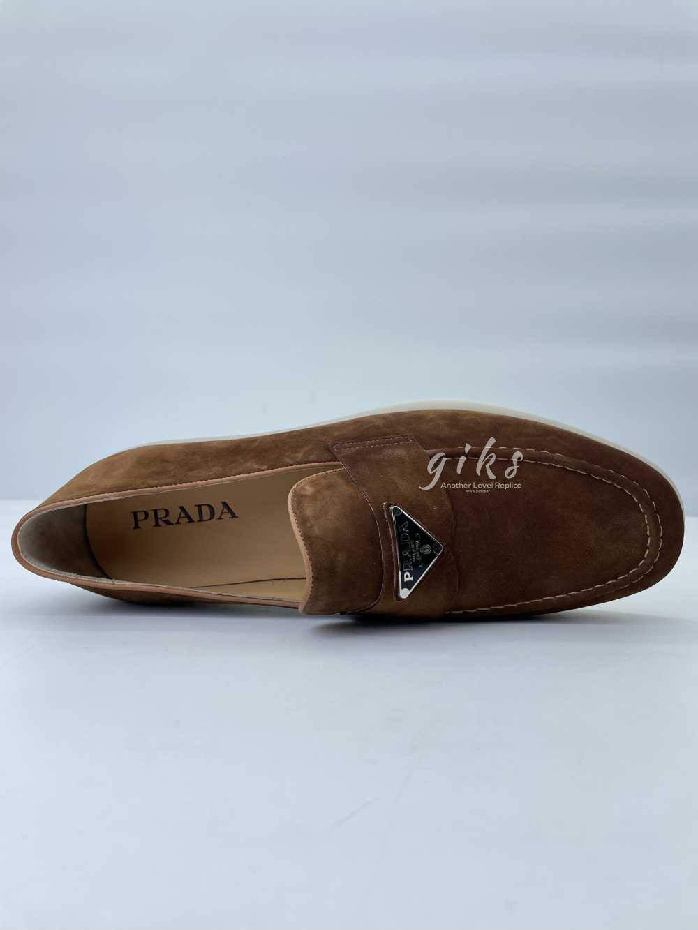 프라다 스웨이드 가죽 브라운 로퍼