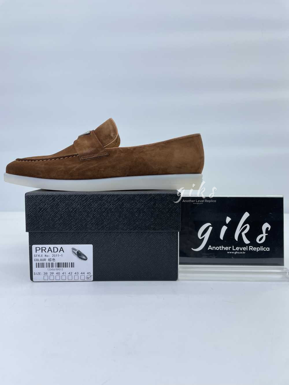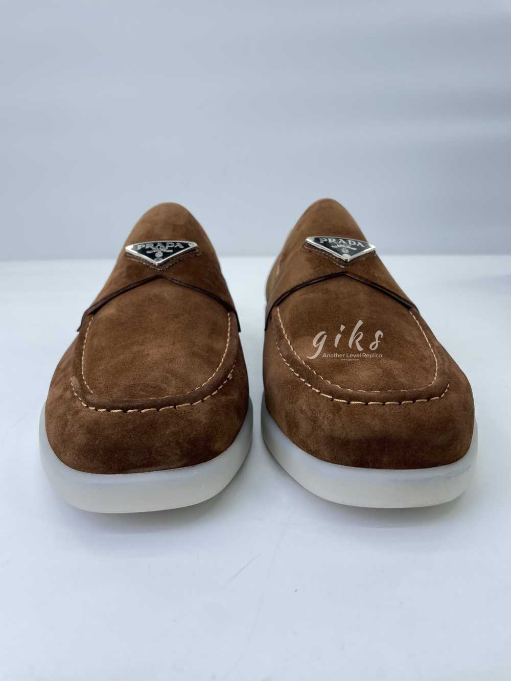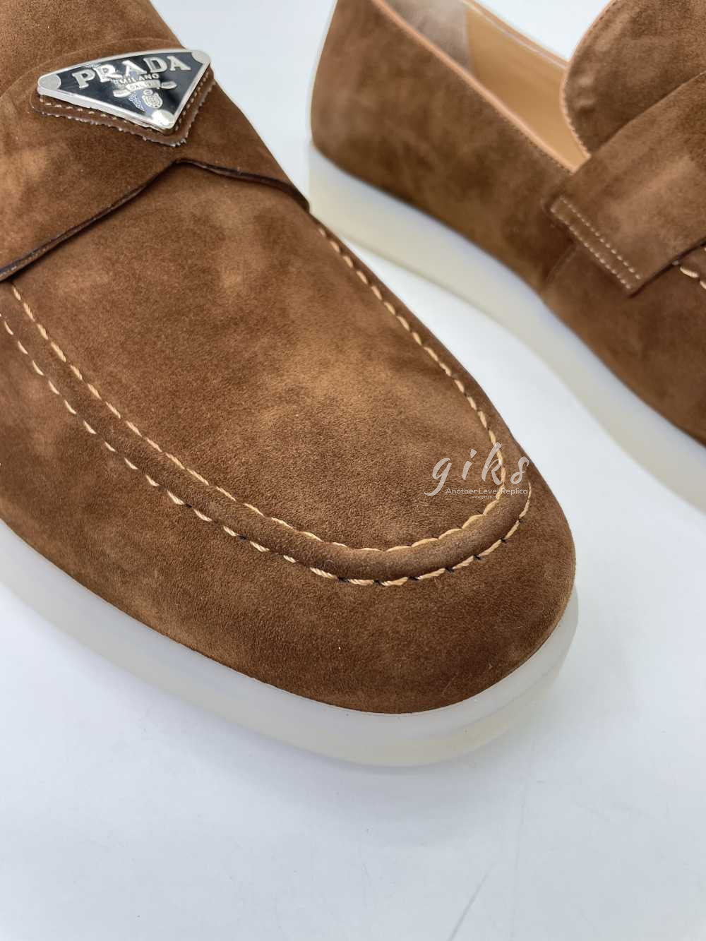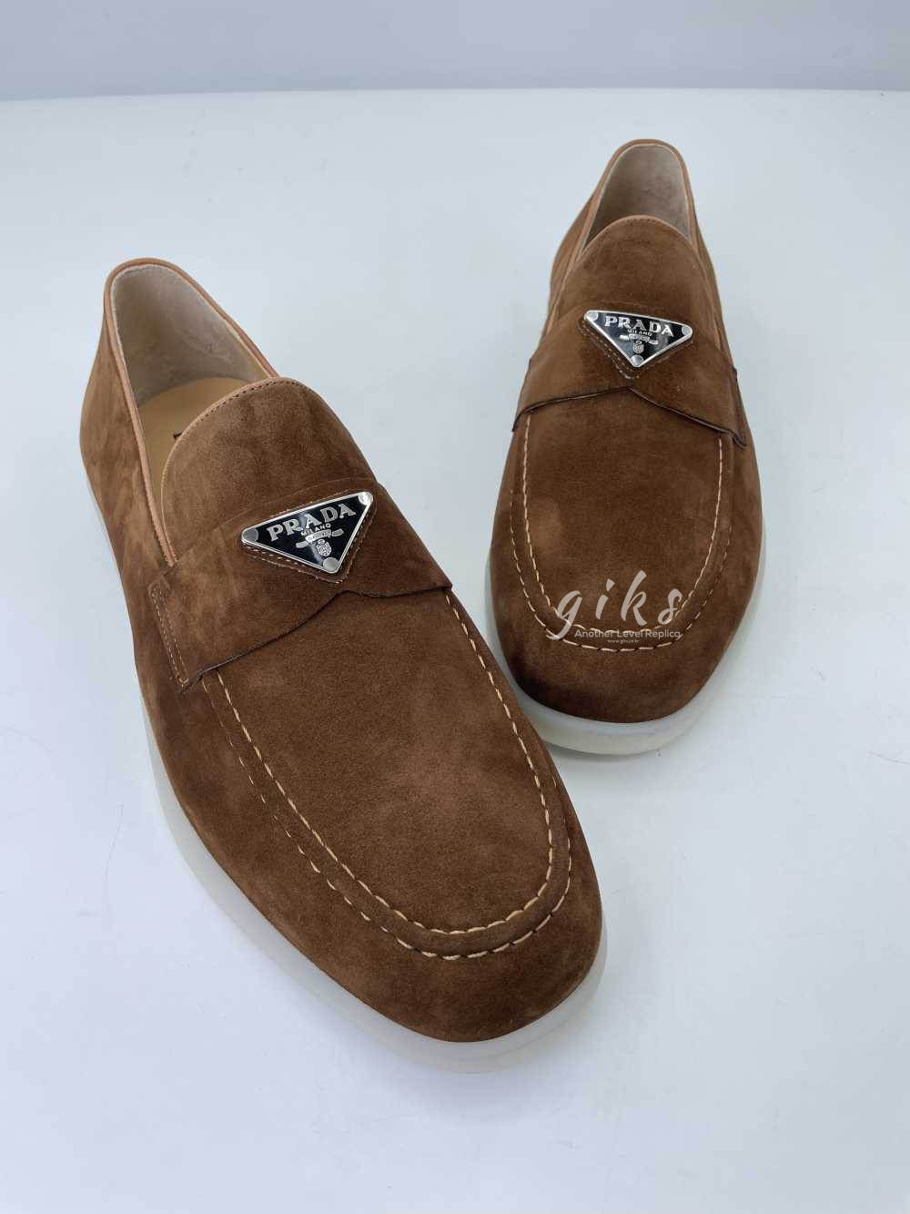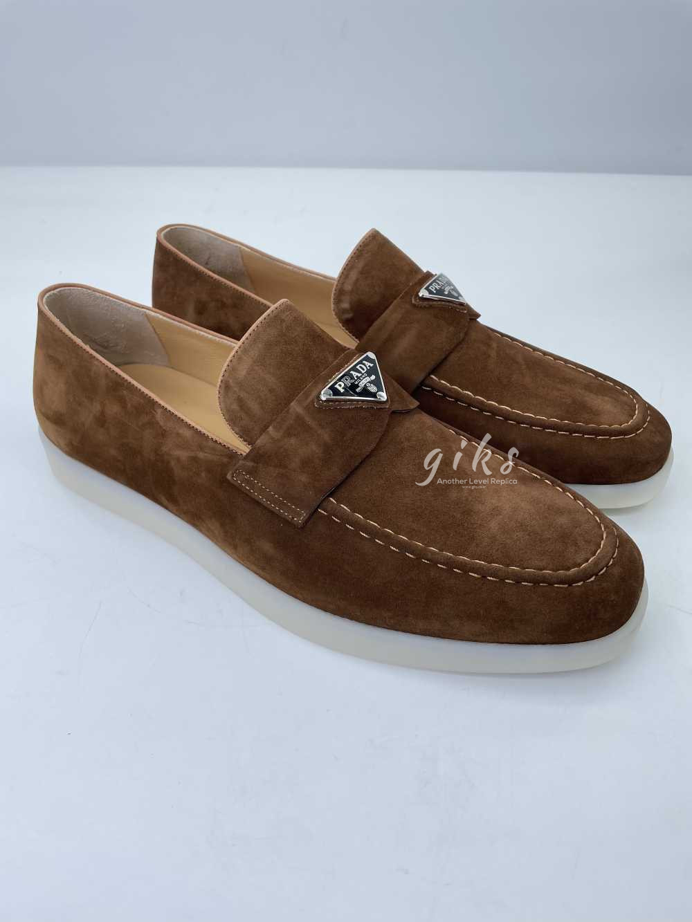 프라다 스웨이드 가죽 브라운 로퍼