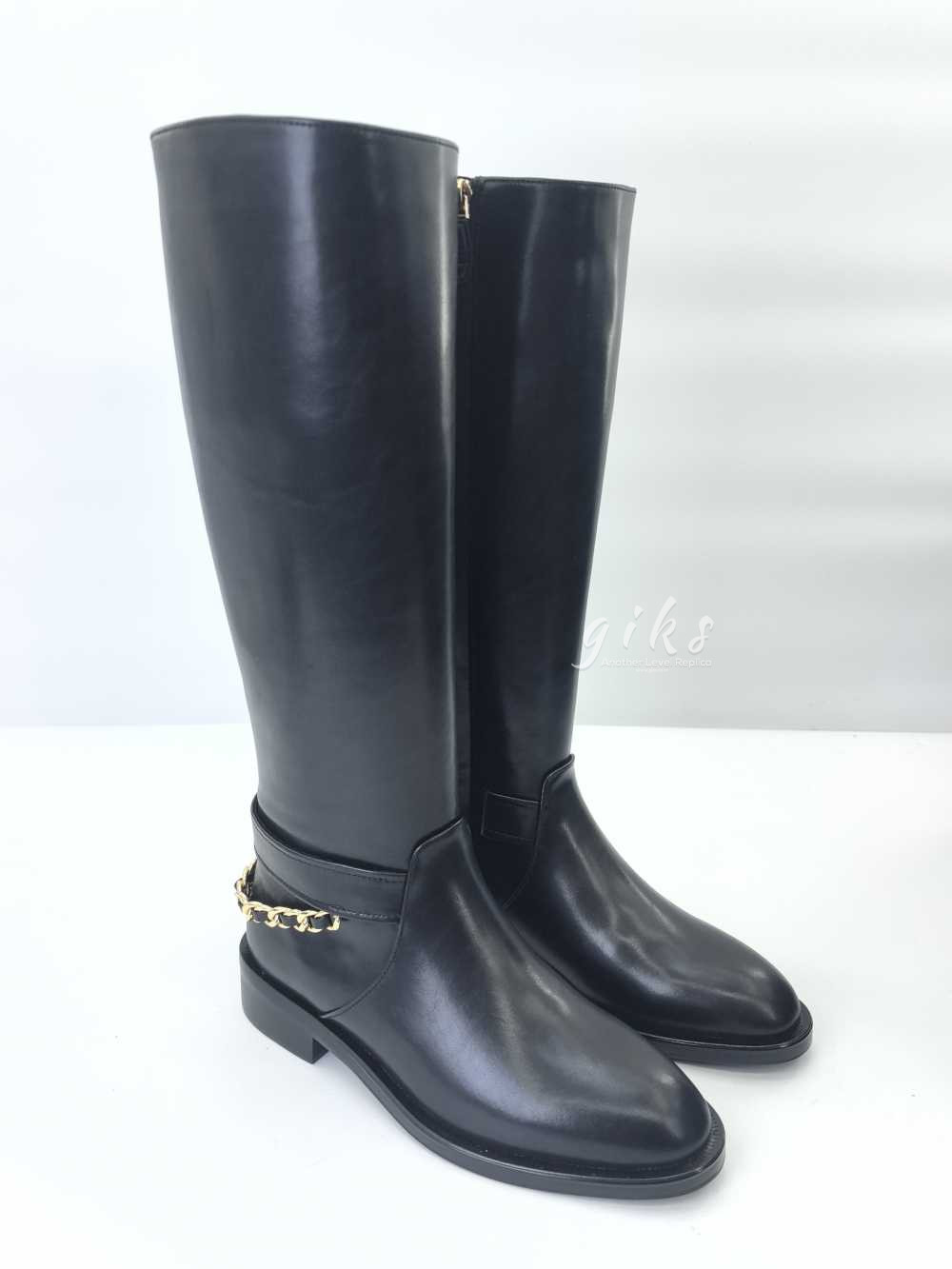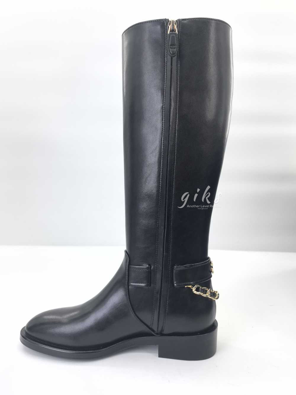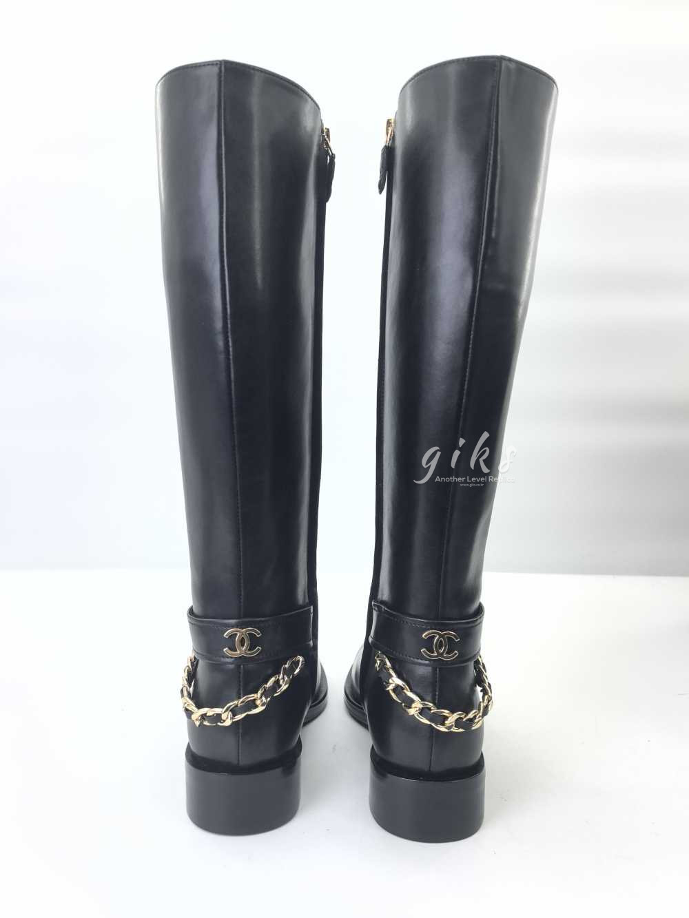 샤넬 하이 부츠 카프스킨 골드 메탈 & 블랙