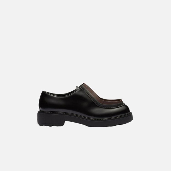 프라다 Diapason 브러시드 가죽 레이스업 슈즈 블랙 브라운