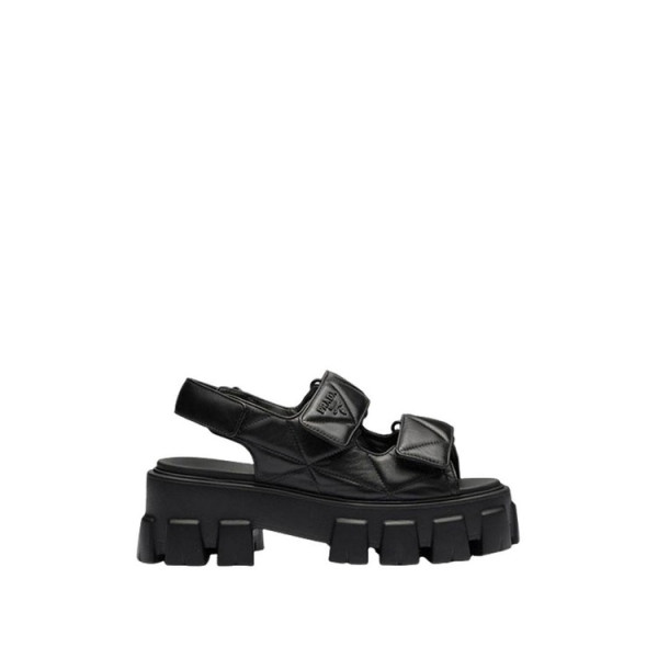 프라다 트라이앵글 로고 퀼팅 레더 샌들