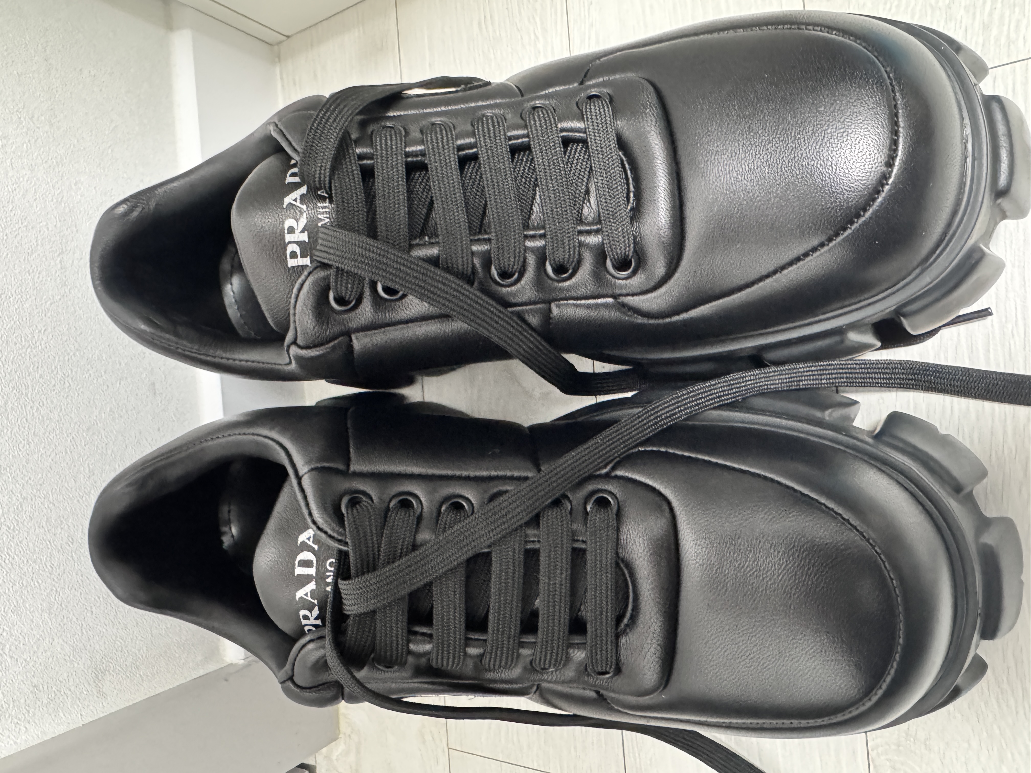 프라다 블랙 레더 스니커즈