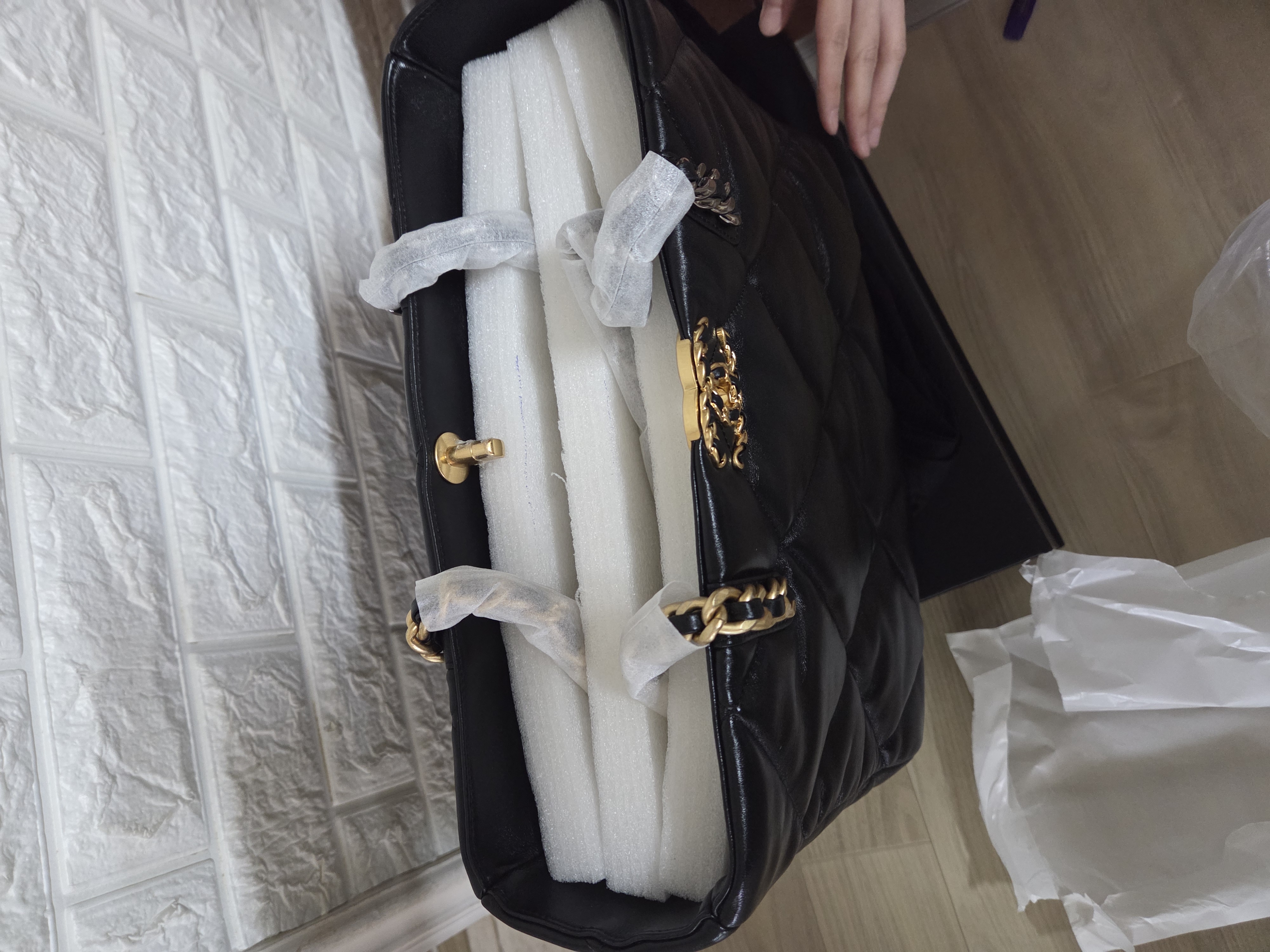 샤넬 19백 램스트 East West 쇼퍼백 블랙