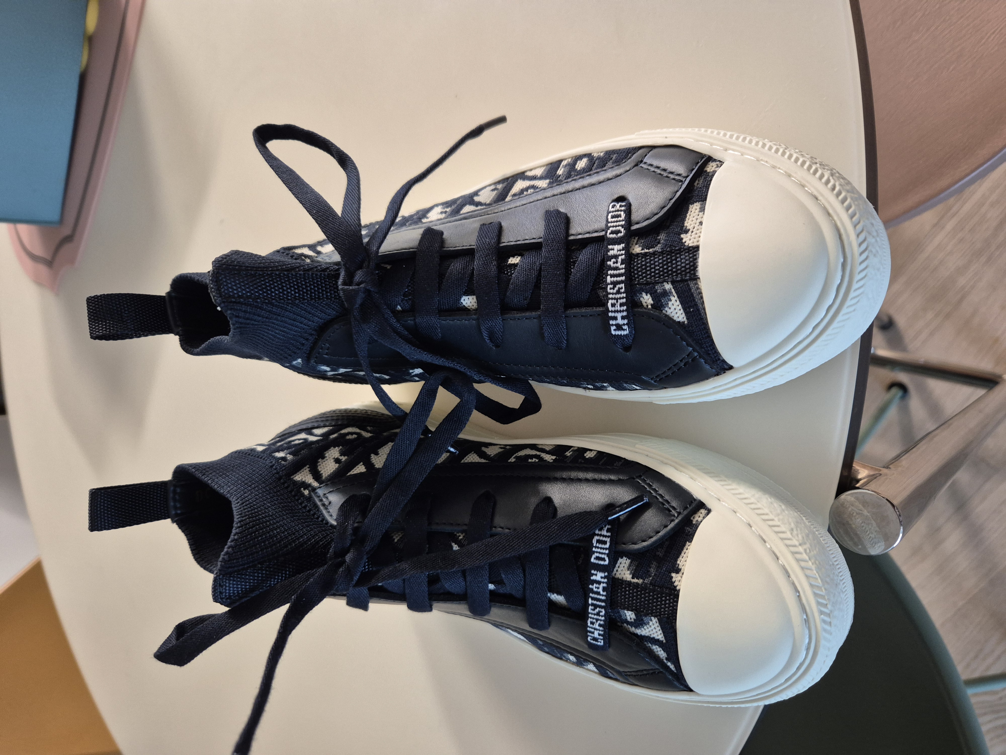 디올 하이탑 플랫폼 스니커즈 딥블루