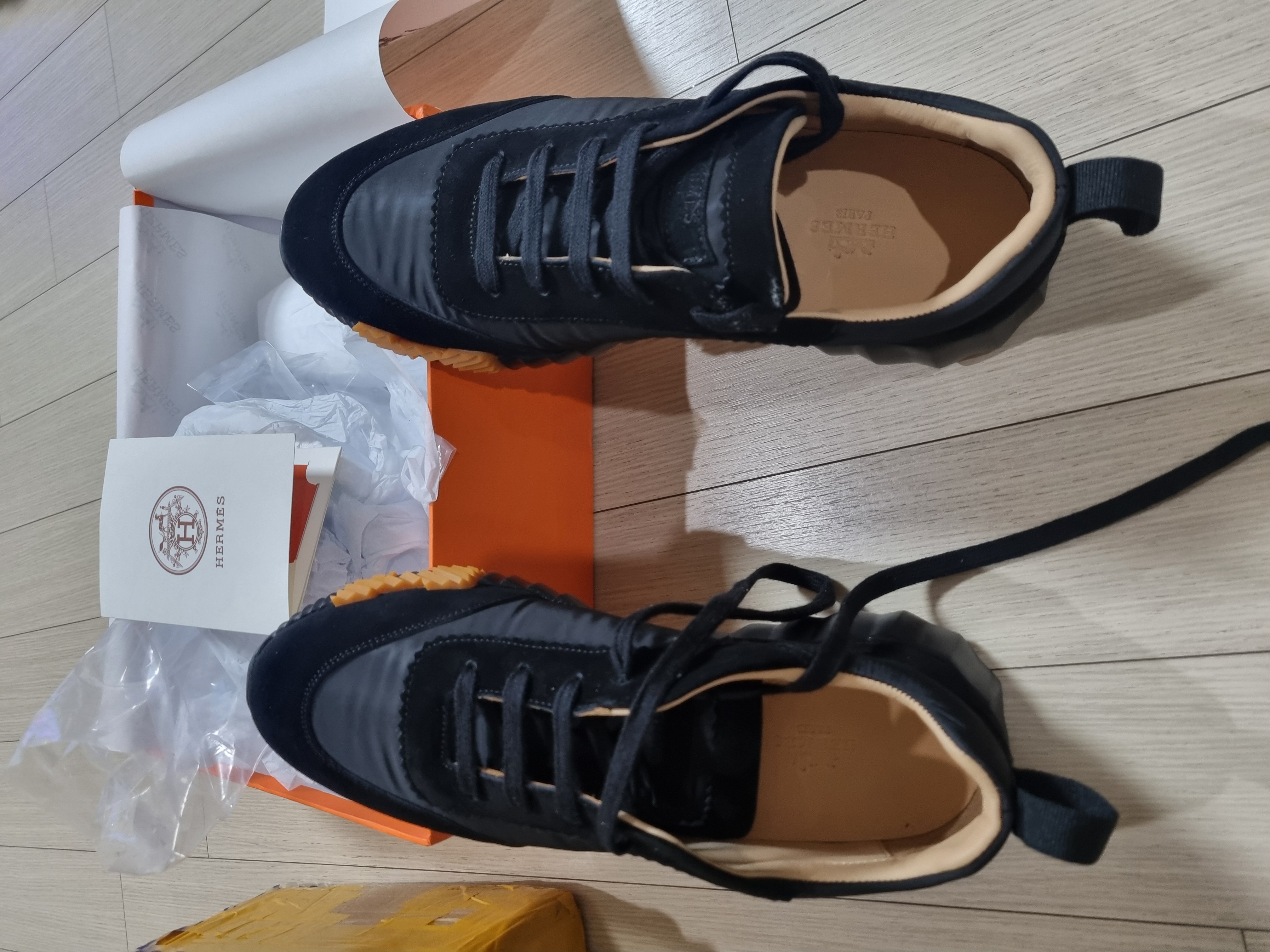 에르메스 바운싱 블랙 스니커즈 고트스킨 오렌지