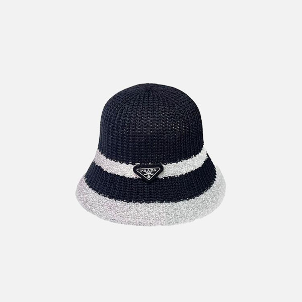 프라다 배색 블랙 니트 버킷 햇