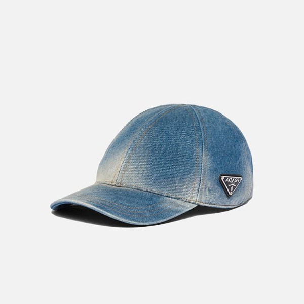 프라다 라이트 블루 워싱 데님 베이스볼 캡