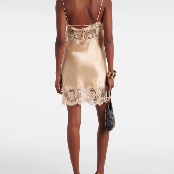 생로랑 실크 레이스 슬립 드레스