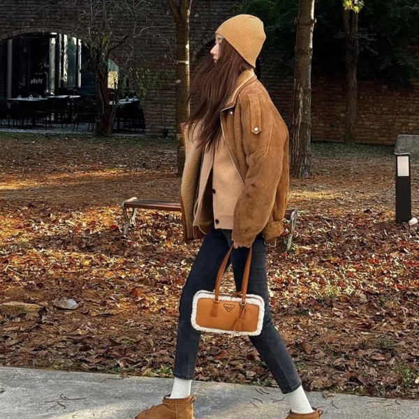 프라다 미디엄 스웨이드 숄더 백