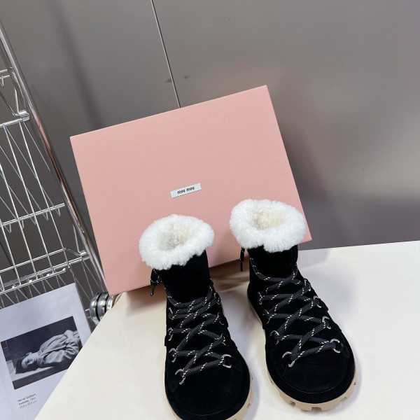 미우미우 통굽일자 양털부츠