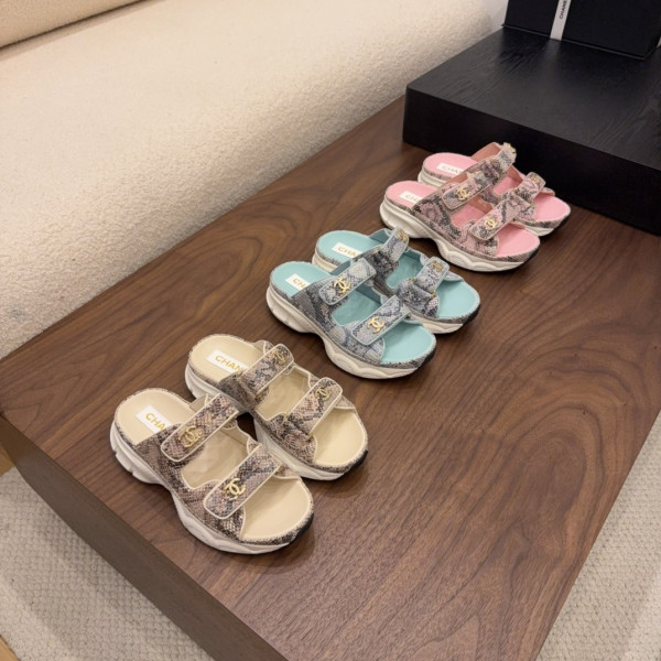 샤넬 25C 신상 통굽 벨크로 슬리퍼