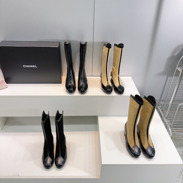 샤넬 스웨이드 배색 통굽 라이더 부츠