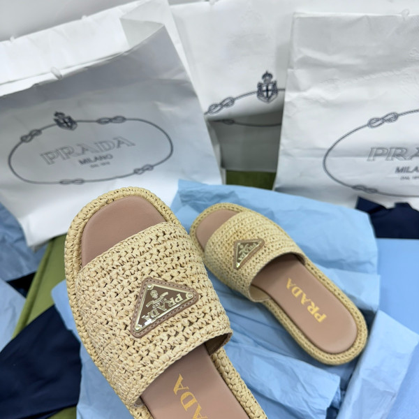 프라다 밀짚 바캉스 슬리퍼