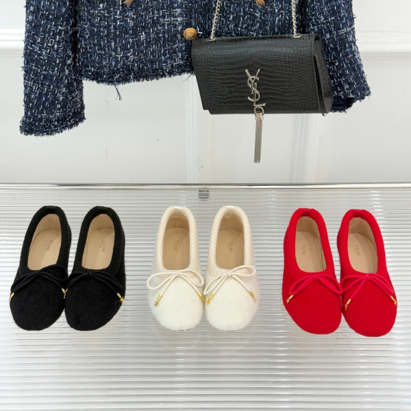 셀린느 25WF 신상 리본 니트 퍼 발레 슈즈 > CELINE