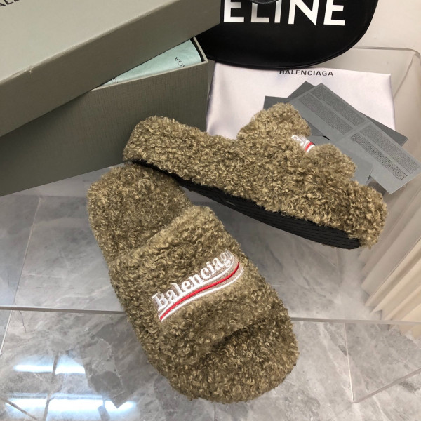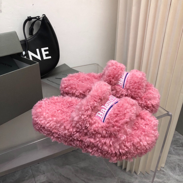 발렌시아가 신상 겨울 통굽 퍼 슬리퍼