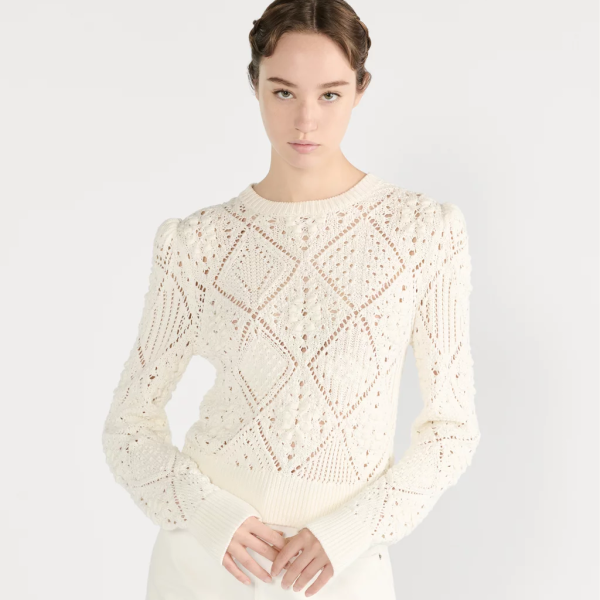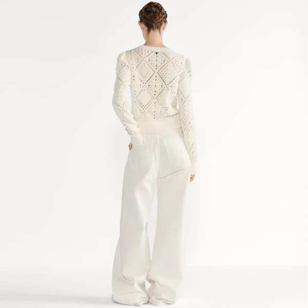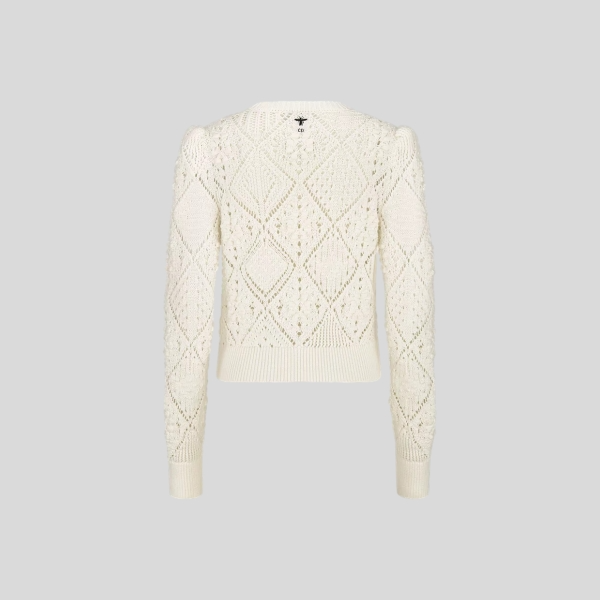 디올 화이트 오픈워크 코튼 니트 스웨터