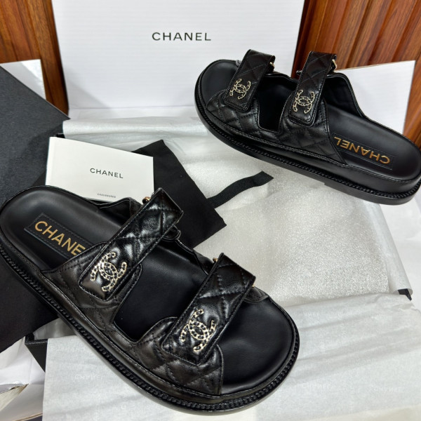 샤넬 CC 로고 벨크로 블랙 샌들