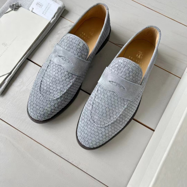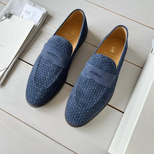 브루넬로쿠치넬리 남성 블루 스웨이드 우븐 페니 로퍼