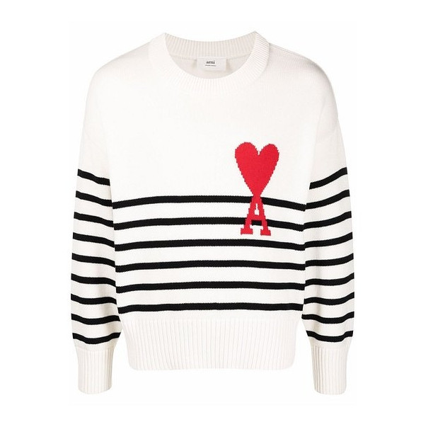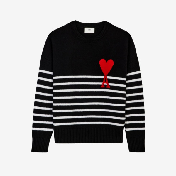 아미 빅 하트 로고 스트라이프 오버사이즈 인타르시아 스웨터