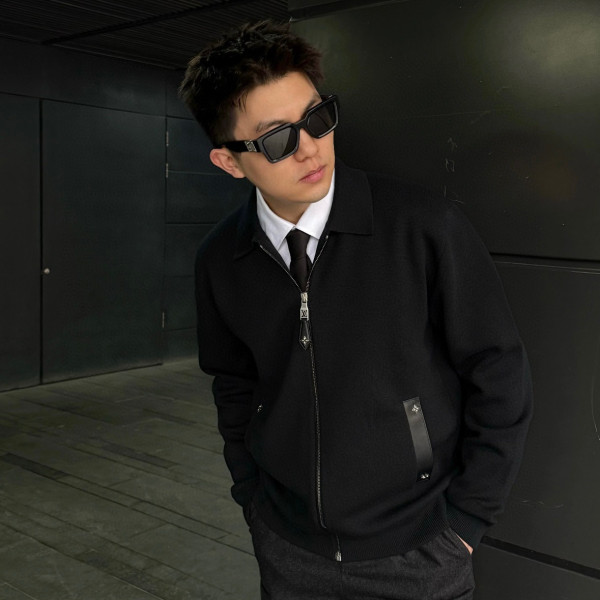루이비통 가죽 니트 블루종 점퍼