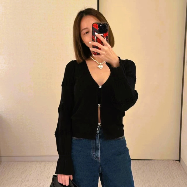 샤넬 슬리브 니트 가디건 블랙