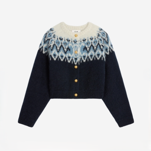 셀린느 페어 아일 가디건 모헤어 실크 블루 오프 화이트
