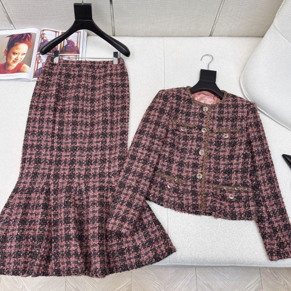 샤넬 블랙&핑크 체크 자켓