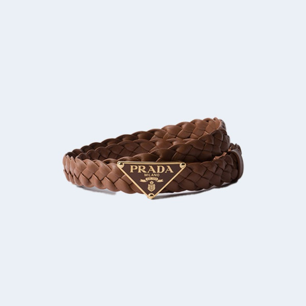 프라다 트라이앵글 로고 가죽 벨트 브라운 25mm
