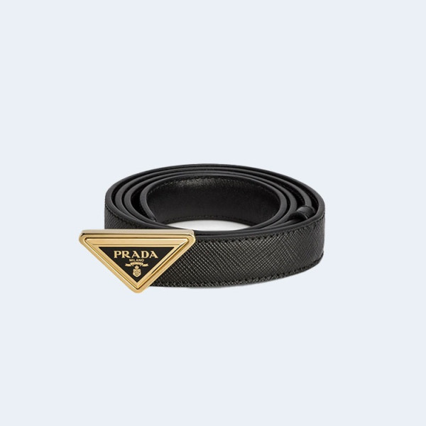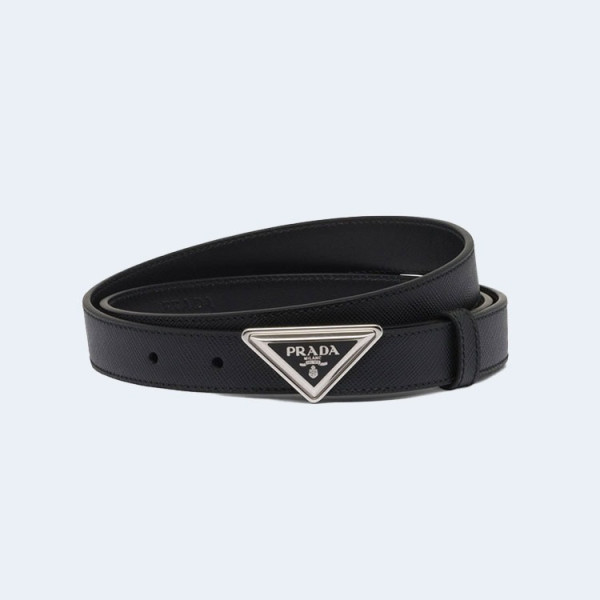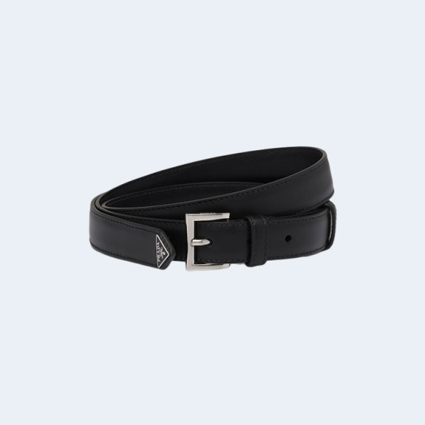프라다 트라이앵글 로고 가죽 벨트 블랙 25mm
