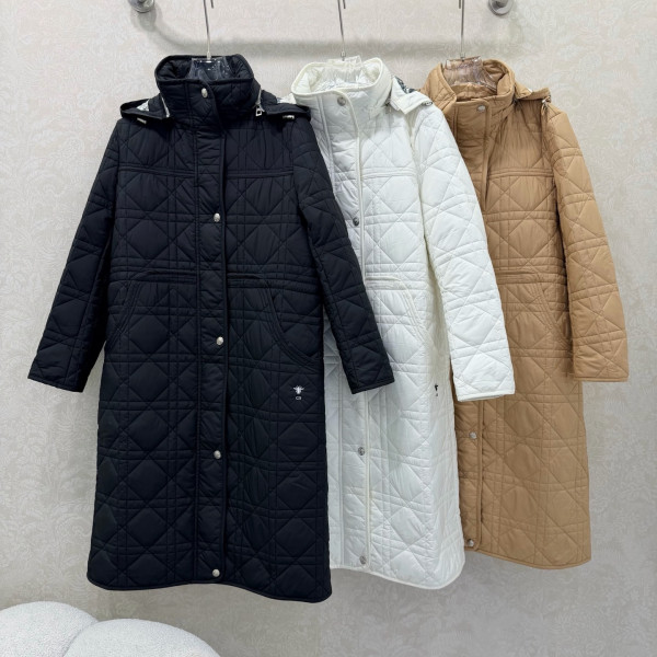 디올 신상 데페도라 후드 누빔 롱 다운 점퍼