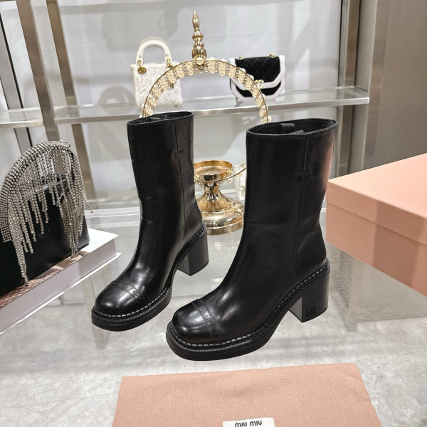 미우미우 라운드 가죽 앵클부츠
