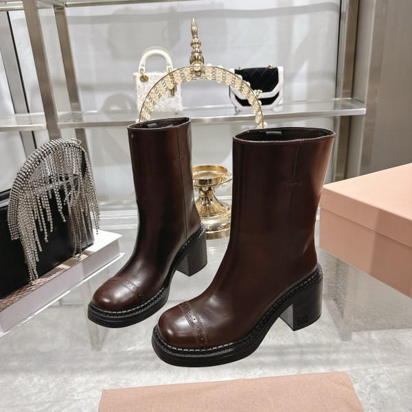 미우미우 신상 빈티지 가죽 앵클부츠