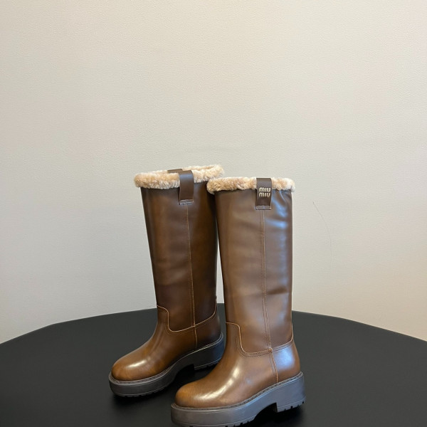 미우미우 통굽일자 양털부츠