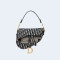디올 오블리크 자수 새들 백 네이비 블루
