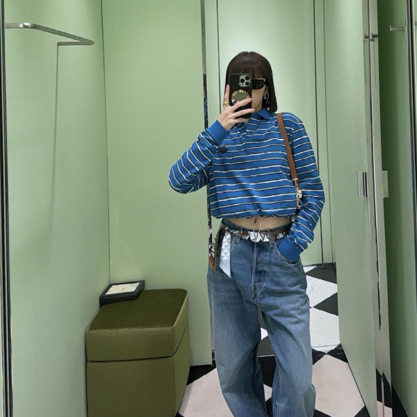 프라다 스트라이프 긴팔 티셔츠