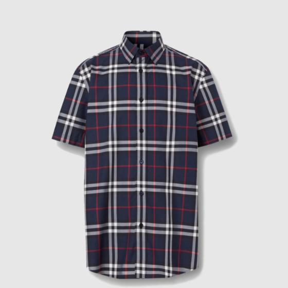 버버리 쇼트 슬리브 체크 코튼 포플린 셔츠