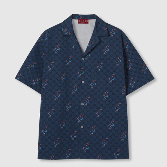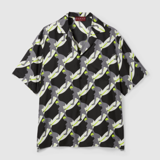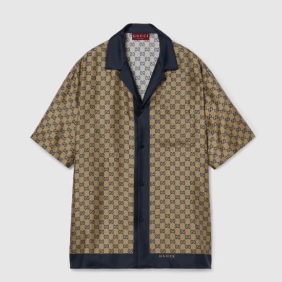구찌 프린트 실크 볼링 셔츠