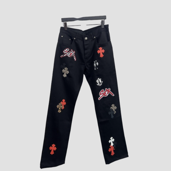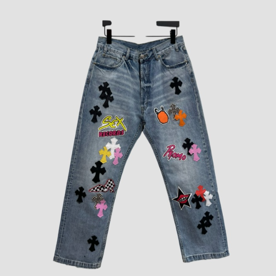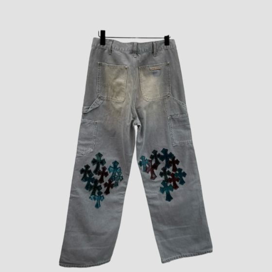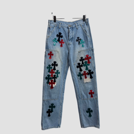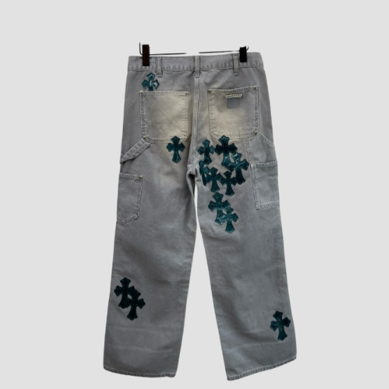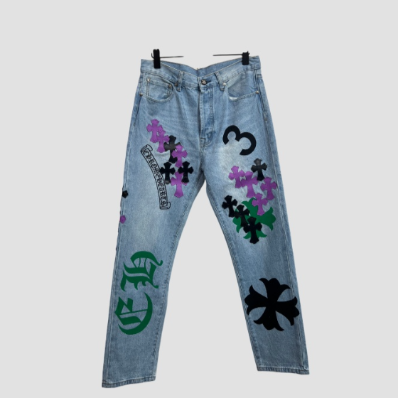크롬하츠 레더 패치 데님 진 청바지
