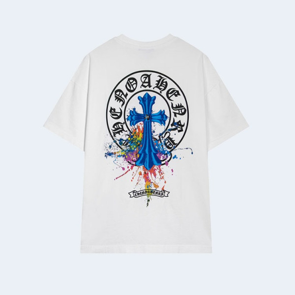 크롬하츠 멀티 블루 컬러 워싱 코튼 티셔츠 화이트