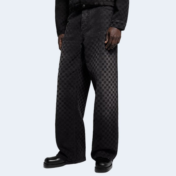 루이비통 플록드 다미에 데님 와이드 레그 팬츠 1AHBKQ