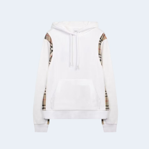 버버리 빈티지 체크 파넬 후디 화이트
