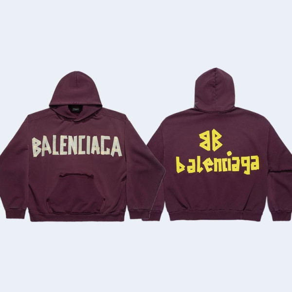 발렌시아가 남성 뉴 테이프 타입 Tr 립드 포켓 후디 버건디