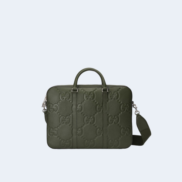 구찌 다크 그린 레더 점보 GG 브리프케이스