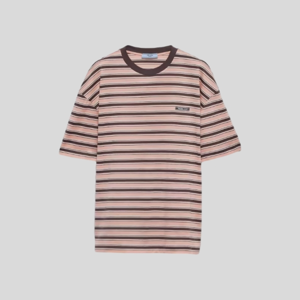 프라다 리브 칼라 스트라이프 티셔츠
