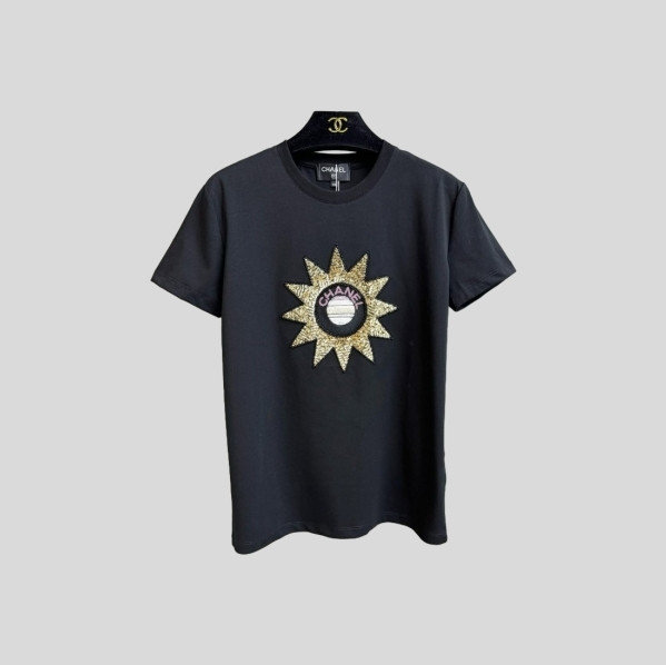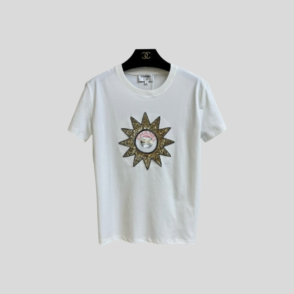샤넬 스팽글 자수 반팔 티셔츠(2color)