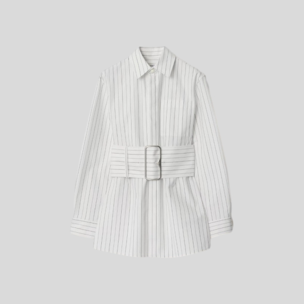 버버리 스트라이프 와이드 벨트 셔츠