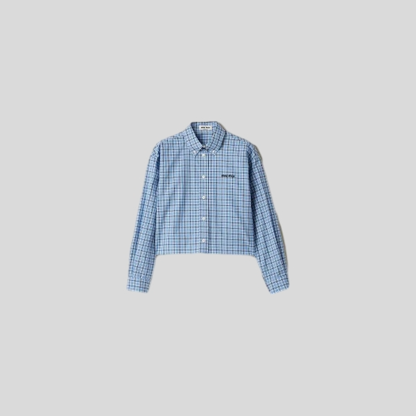 미우미우 블루 체크 팝린 셔츠
